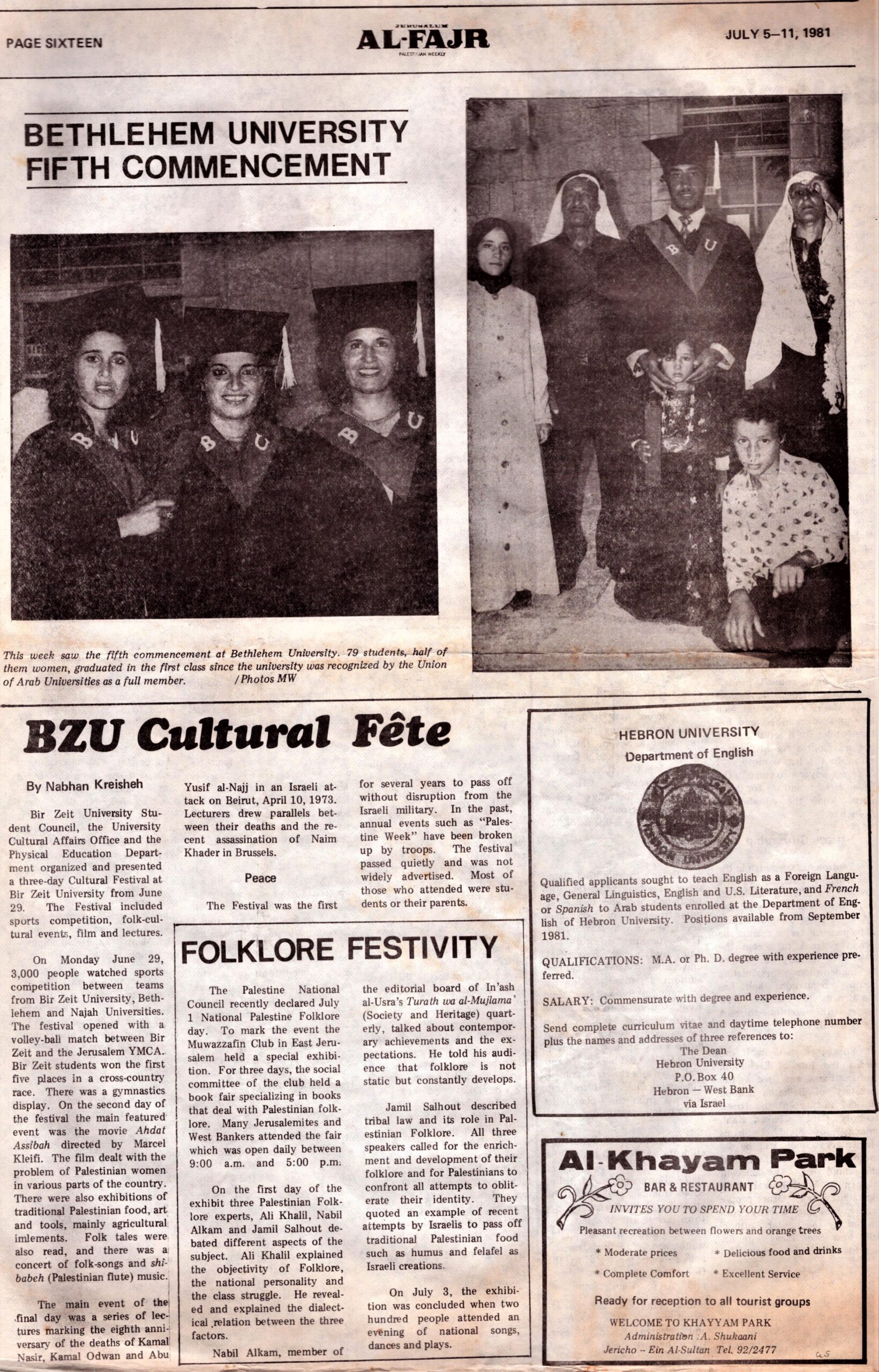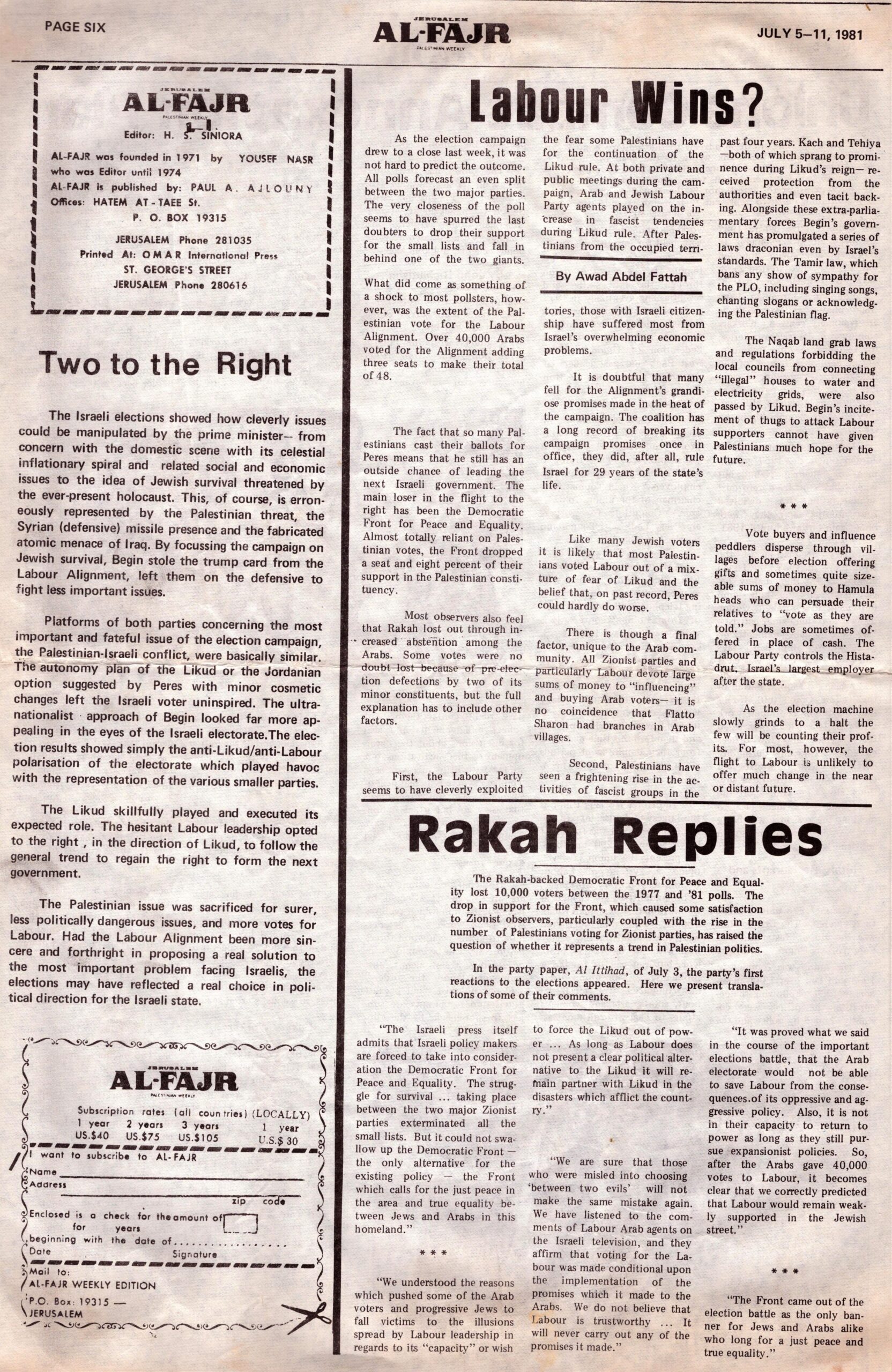 Al-Fajr 5-11 July 1981 (missing pages 7-10)