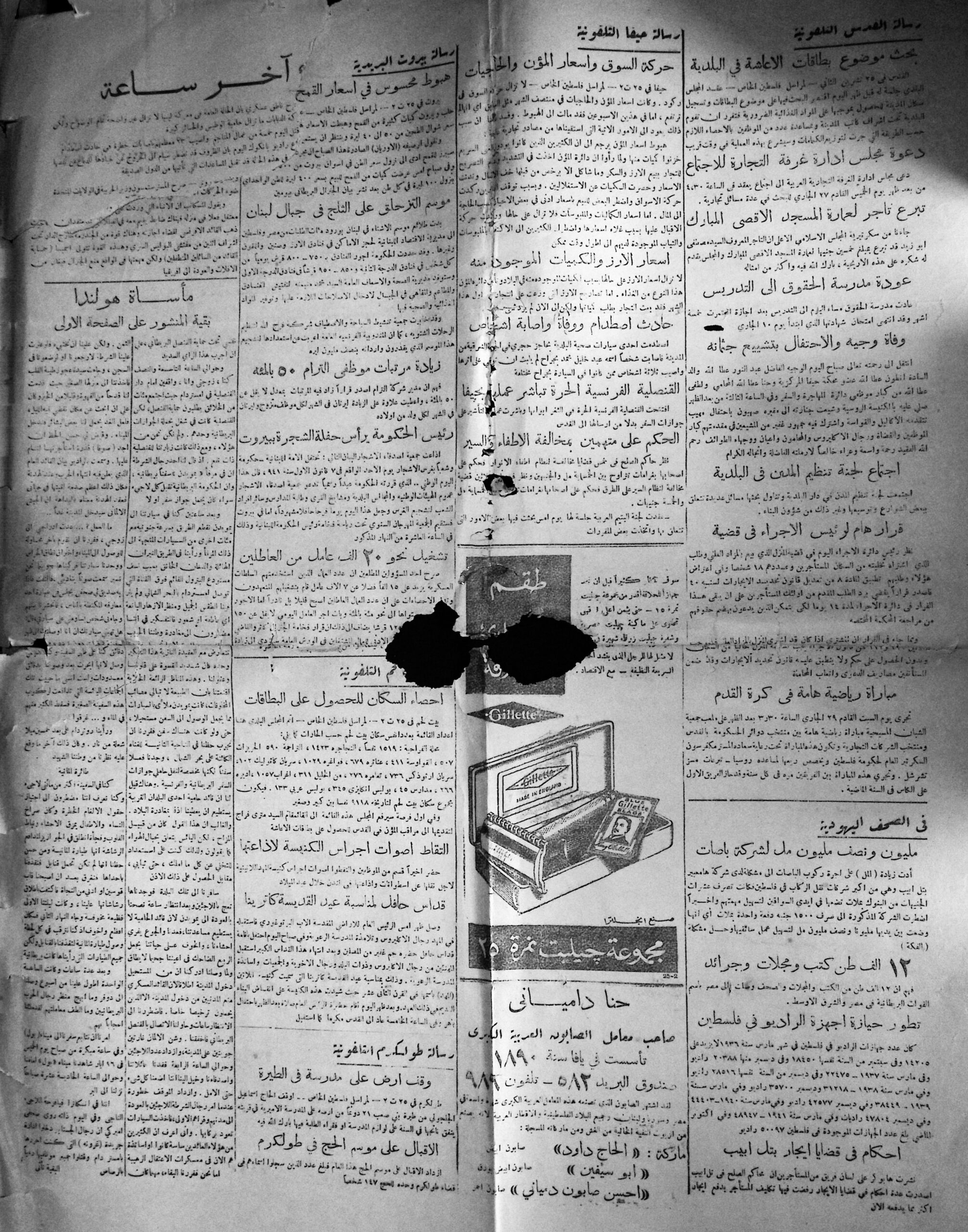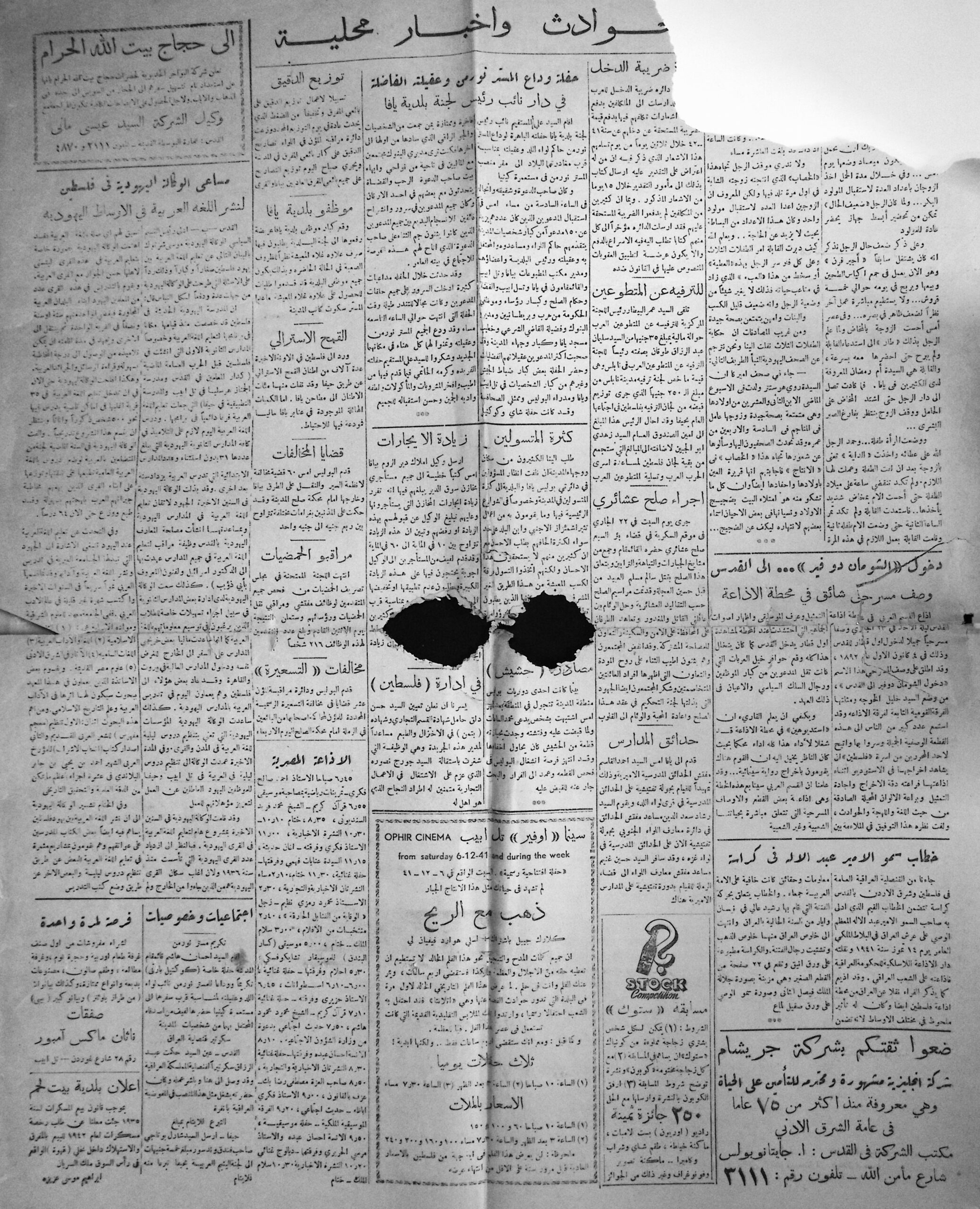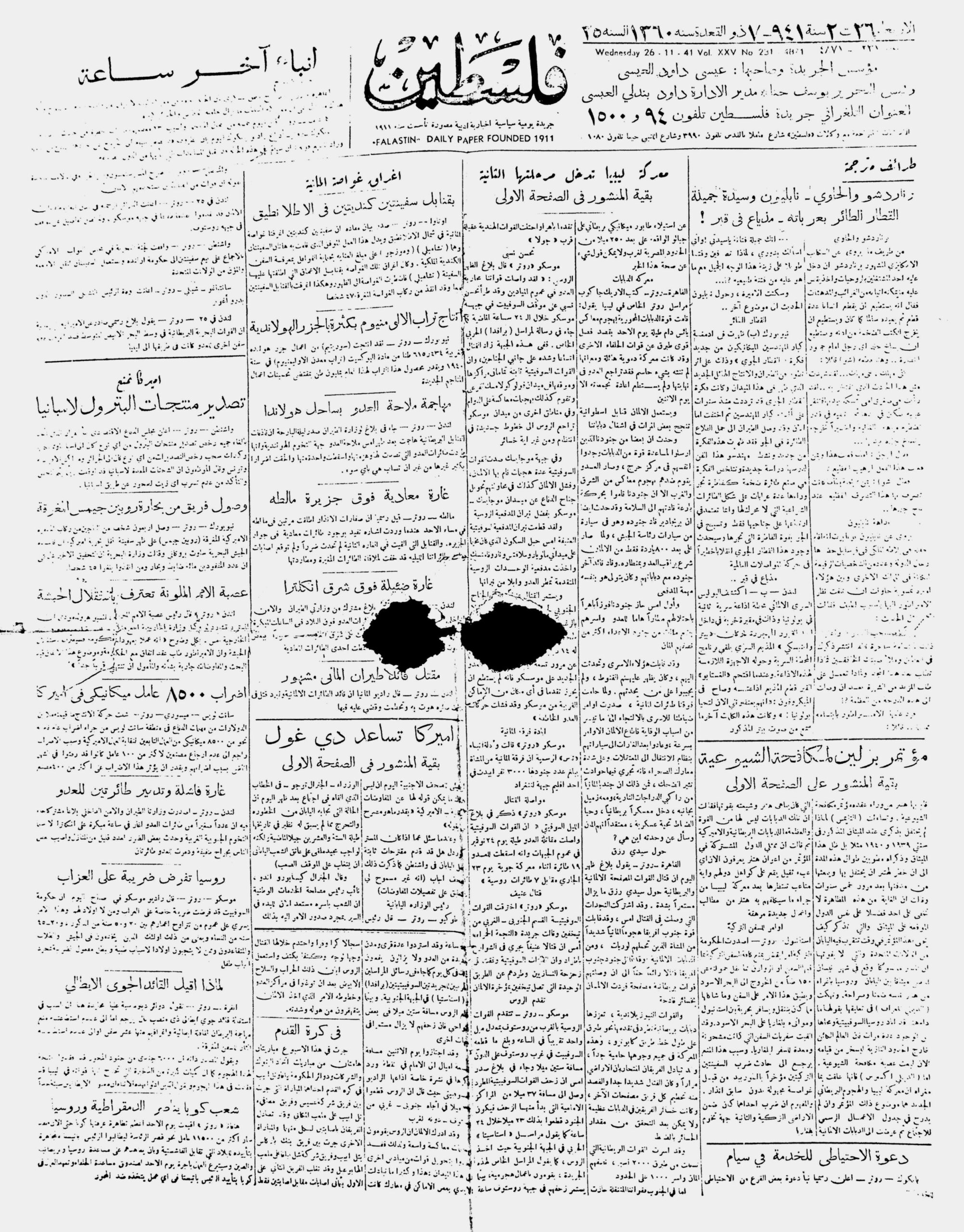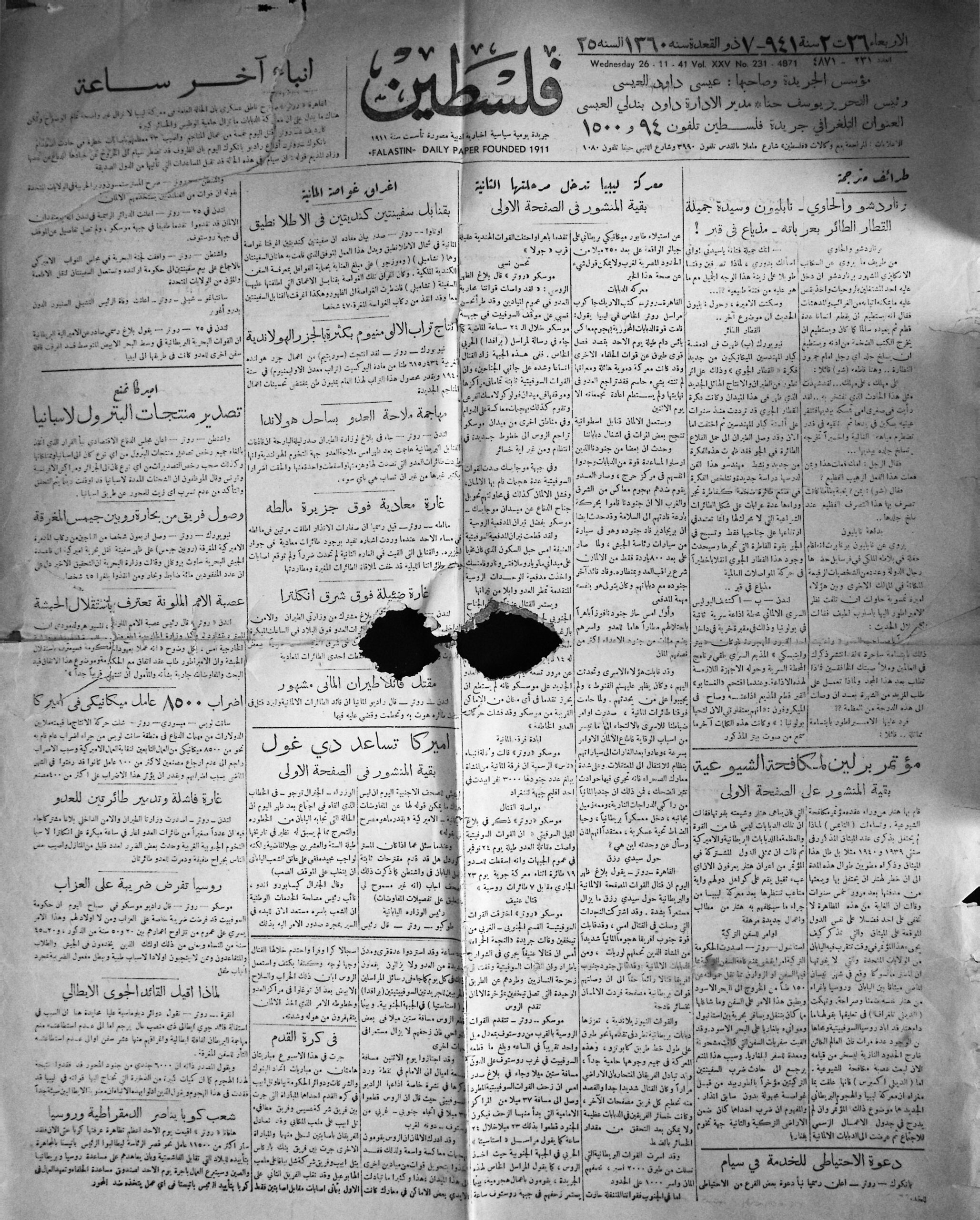 Falastin 1941-26-01 damaged issue